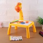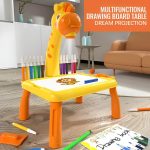 Проектор с цветен дизайн на жираф, създаден да привлича вниманието и да забавлява децата, като подпомага развитието на моторните и когнитивните им умения.