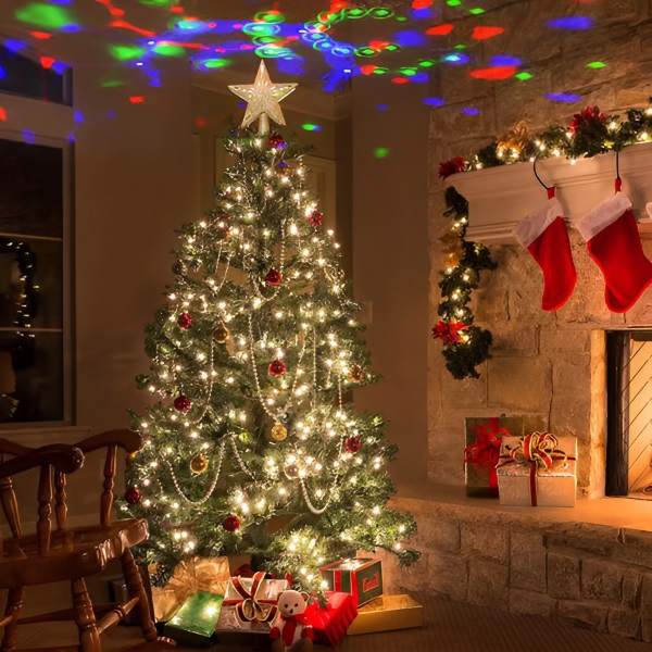 Създава вълшебна атмосфера с анимирани 3D проекции, които танцуват над вашето дърво.